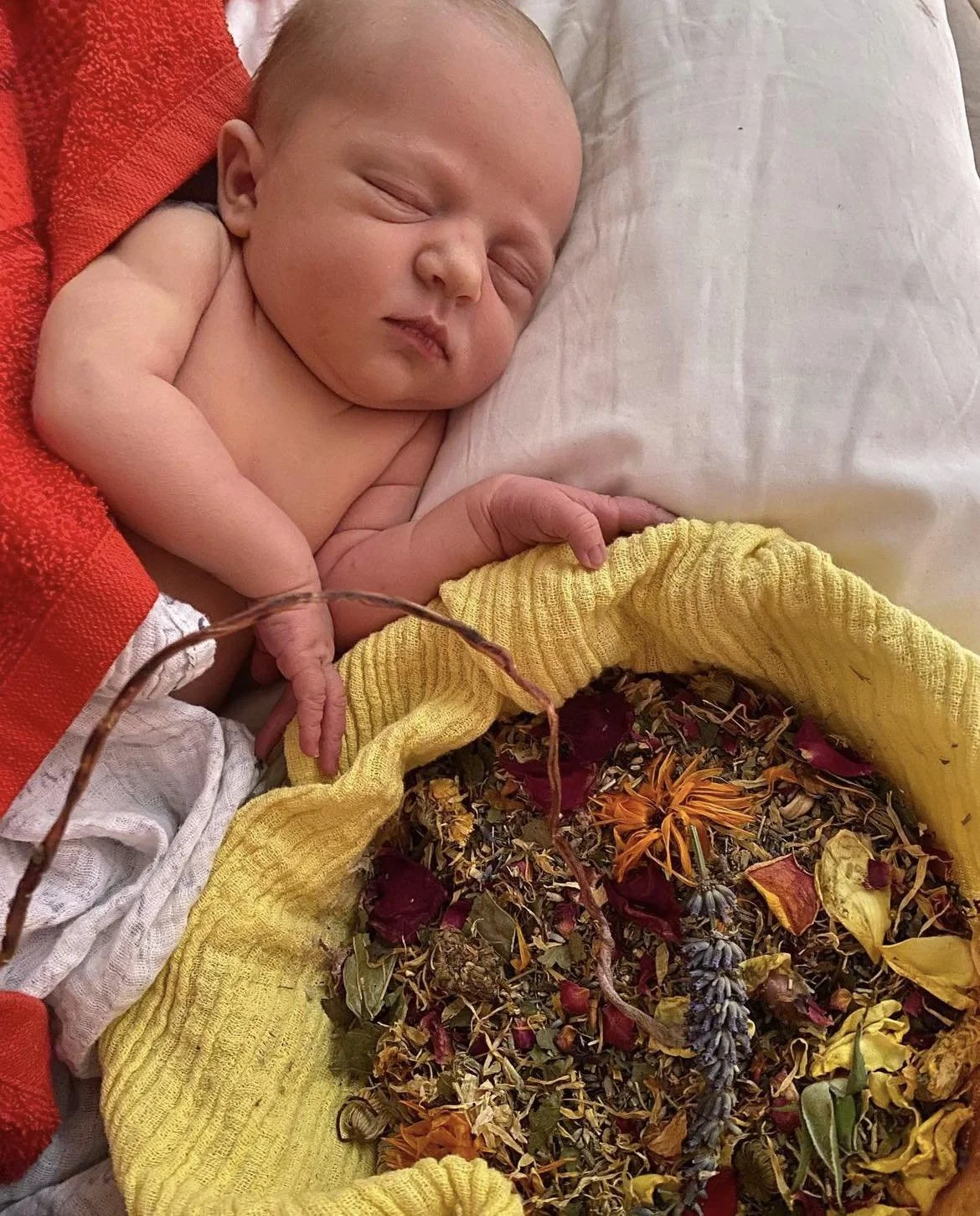 Rather than ‘cutting the cord’, you can choose to keep the connection between baby and placenta intact with the intention of allowing baby to choose when they separate from their womb mate. Families who choose this as part of their journey allow the umbilical cord to dry and naturally release away from their baby’s belly button. This can take anywhere from 3-9 days after birth and is best tended to with a Lotus Birth Placenta Bag and a fragrant blend of herbs and salt to keep the placenta from spoiling. When you really consider it, a Lotus Birth is the highest form of non-intervention on the placenta, and it is also a big decision for a family to make the space in the early postpartum to tend to it.